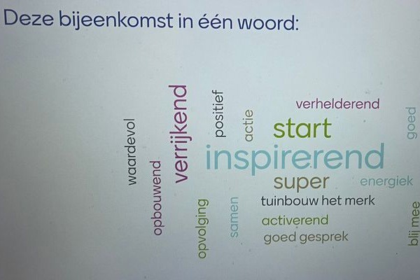 Onder leiding van dagvoorzitter Adri Bom-Lemstra, voorzitter van Glastuinbouw Nederland, wisselden de aanwezigen ideeën met elkaar uit via dialoogtafels en Mentimeter. Zo kwamen ideeën naar voren als: 'een ketenaanpak met focus op vooruitgang en harde aanpak van misstanden', 'structurele dialoog', 'meer experimenteerruimte' en 'een overheid die energie en ondernemers faciliteert'. Rode draad daarin was de gedachte: neem eigenaarschap, zet stappen en werk samen.