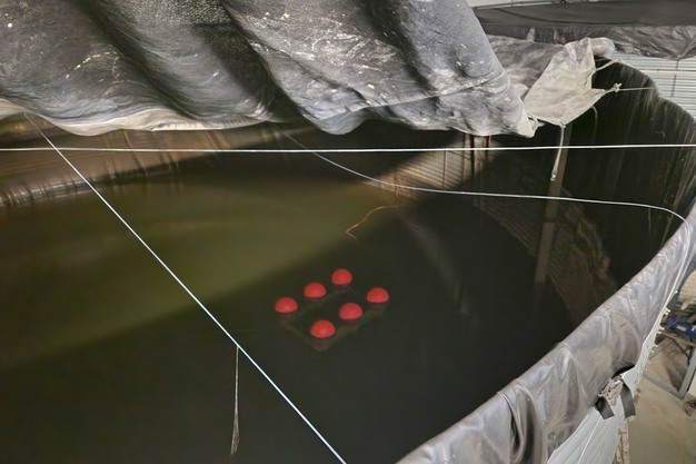 Wat ook opvalt: in het bassin drijven een paar oranje ballen. Die helpen de telers om de waterkwaliteit goed te houden, zoals ze dat ook op hun individuele bedrijven doen met de USAF™ caviterende ultrasone zenders van Ultramins.
