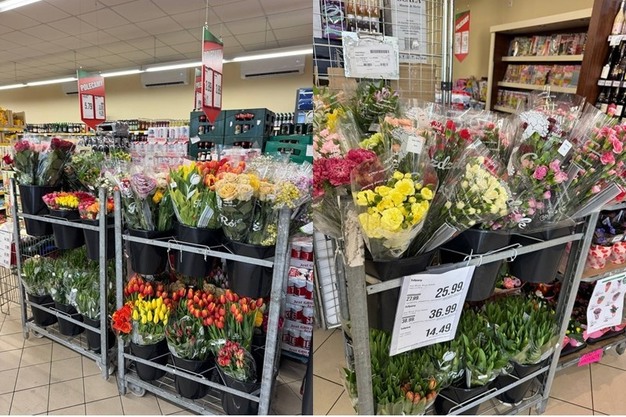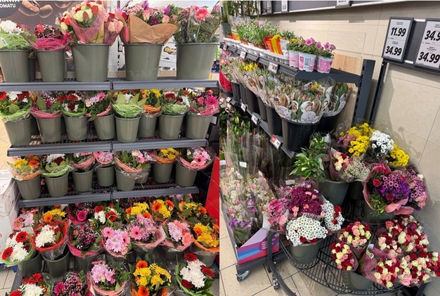 Tijdens hun bezoeken zagen Tustanivskyi en zijn team een gevarieerd bloemenaanbod, afhankelijk van de supermarkt. "De Poolse keten Dino verraste bijvoorbeeld met hoogwaardige premium rozen van 50 cm met grote bloemkoppen. Daarnaast boden zij tulpen van eigen bodem en anjers die alleen uit Colombia worden geïmporteerd."