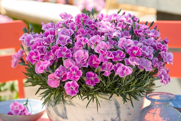 "Dianthus It-Girl van Selecta is niet zomaar een bloem; ze is de ware! Deze vaste plant uit de Whetman Alpine-serie heeft gegolfde, roze bloemen met een subtiel Picotee-patroon als blikvanger. It-Girl is een geboren bloeier, gemakkelijk te verzorgen en doet het goed in kleine potten en containers met gemengde beplanting of vooraan in perken en borders."
