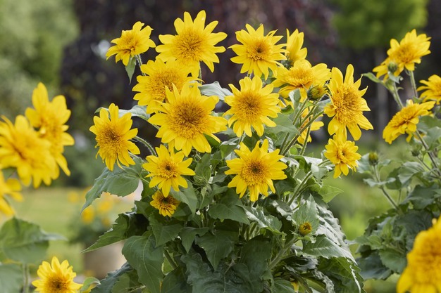 "Deze middelgrote, bossig groeiende zonnebloem doet het niet alleen uitstekend in de tuin, maar straalt ook in een grote pot of container met een gemengde beplanting op het terras of balkon."
