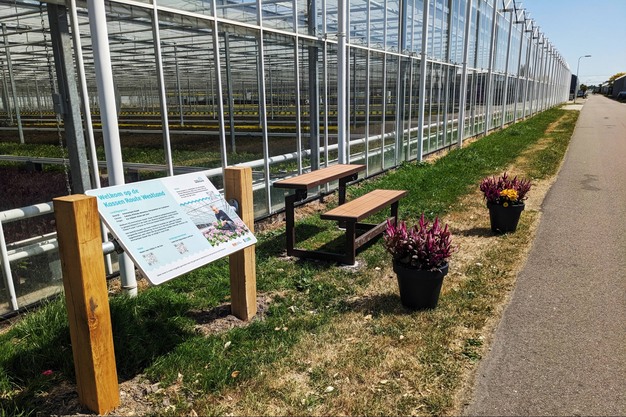 Bezoek Westland is blij dat niet alleen fietsers, maar ook tuinders enthousiast zijn over de manier waarop de glastuinbouw onder de aandacht worden gebracht. Alle tuinders hebben zich vorig jaar zelf gemeld bij Bezoek Westland, met het verzoek om mee te doen aan de Kassen Route Westland. Het enthousiasme toont zich ook in de actie van Jeffrey Ammerlaan van Ammerlaan-Sosef om de stopplek bij het infobord naast zijn kas aan te kleden met een fraaie picknickbank en een paar leuke potten met planten. Vanaf het bankje kijk je zo zijn kas in. Mogelijk komt bij het infobord van Piet Vijverberg op een later moment ook nog een picknickbank te staan.