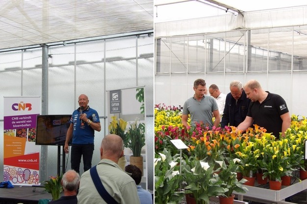 Op dinsdag 21 mei organiseerde Kapiteyn Captain Calla in samenwerking met CNB een kwekersbijeenkomst. Ruim 70 kwekers, broeiers, toeleveranciers en andere vakgenoten kwamen bijeen voor een bezoek aan de volbloeiende proefkas met calla's. Tijdens een gezamenlijke rondgang door de proefkas werd uitgebreid stilgestaan bij de nieuwste ontwikkelingen in callaveredeling.