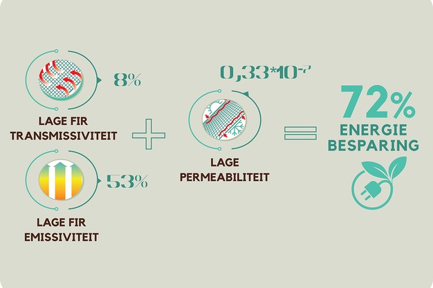 De permeabiliteitswaarde van Noctis Thermo, bepaald door WUR, bedraagt 0,33*10-7. Deze waarde ligt aanzienlijk lager dan de permeabiliteitswaarde van een traditioneel energiescherm of lichtuitstootscherm die ca. 0,6*10-7 bedraagt. De combinatie van de lage permeabiliteit en de lage FIR-transmissiviteit en emissiviteit resulteert in een scherm dat 72% energie bespaart. Het ingeweven garenpatroon zorgt voor de noodzakelijke afvoer van overtollig vocht.