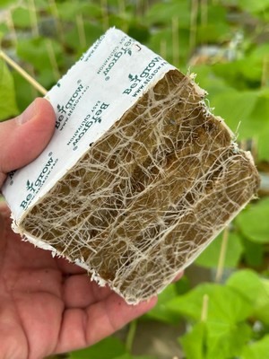 Het 150×150×142 mm blok is inmiddels de populairste maat onder telers in de VS en Canada. "Het biedt een perfecte balans tussen waterretentie en voedingsstoffen. Je ziet geen water druppelen, tenzij je het blok kantelt – zo goed houdt het vocht vast."