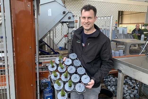 "We hebben een innovatie die automatisch folie op tien potten tegelijk brandt, zodat ze zijn afgedekt tegen onkruid. Het systeem heet Clean-Pot, het is bedacht en ontwikkeld door kweker Gerard Linthorst. We gaan er het eerste jaar mee draaien, ik verwacht dat we het systeem snel terugverdienen door het besparen op arbeidsuren. Reken maar uit: als je mensen het hele seizoen onkruid plukken. En ik weet één ding zeker: onkruid blijft groeien."