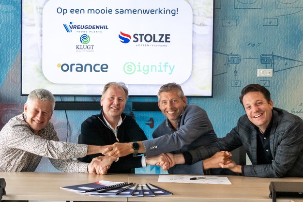 Signify, Orance - Grow Light Architects en Stolze Installatietechniek gaan dit jaar de 45 hectare van Vreugdenhil-Klugt Combinatie voorzien van Philips LED-installaties als vervanging van de huidige SON-T lampen. Het management van de opkweekcombinatie is blij met de ondertekening van het contract, dat de weg vrijmaakt voor energie-efficiënt belichten op maat en geeft ze in de toekomst meer stuurmogelijkheden voor optimale plantsturing in de verschillende opkweekfases.