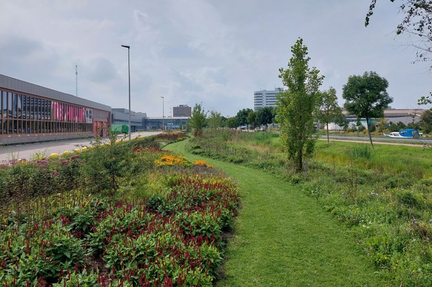 Laten we eerlijk zijn: er ís groen op Trade Parc Westland, maar tot drie jaar geleden overheerste het asfalt en de loodsen. Het is lastig om daar verandering in te brengen: een bedrijventerrein is er vooral voor productie en logistiek. Toch kon het beter, vonden de eigenaren van het terrein. Peter: "Als vereniging zetten we ons ook in voor vergroening. Daarbij gaat het ook over bewustwording en inspiratie: dit is wat je met zo'n bedrijventerrein kunt doen."