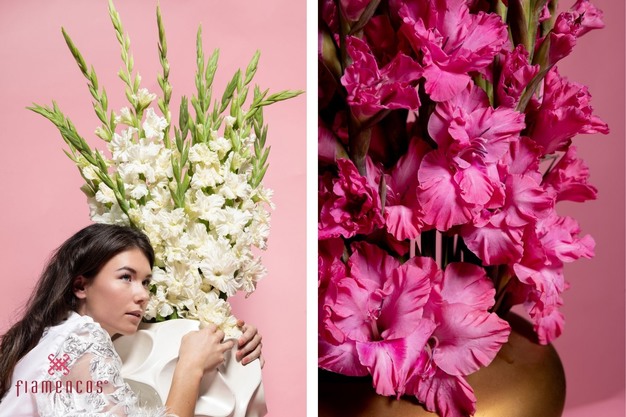 De golvende, dubbelbloemige bloemblaadjes van Flamencos doen denken aan de zwierende stof van een flamencojurk en geven bloemwerk een elegante, expressieve uitstraling. De stevige structuur van de bloembladen zorgt ervoor dat ze zich onderscheiden van andere gladiolen en extra lang mooi blijven.
