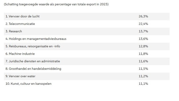 Top 10 branches die het meest afhankelijk zijn van export naar de VS