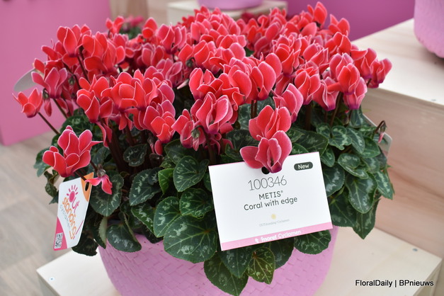 En wat ook belangrijk is - voor consument én bij - zijn natuurlijk de looks en kleuren van een plant. Naast nieuwe kleuren - zoals de eerste F1 cyclamen met blauwe bloemen van Schoneveld Breeding - zien we ook een andere trend die in snijbloemen al wat langer speelt: bloemen die van kleur veranderen. Een voorbeeld daarvan is de Sugar Candy Rose van Meilland. Deze potroos begint met een diep oranje kleur, wordt lichter en kleurt uiteindelijk roze.