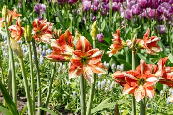 Waar je de klassieke Amaryllis vaak rond Kerst op de vensterbank ziet bloeien, doe je bij deze tuinvariant juist het omgekeerde: plant de amaryllisbollen na de vorst en ze groeien in de late lente uit tot een exotische verrassing met grote bloemen in rijke kleuren: van dieprood, zalmroze, zachtgeel tot wit of met een betoverende bloemtekening.