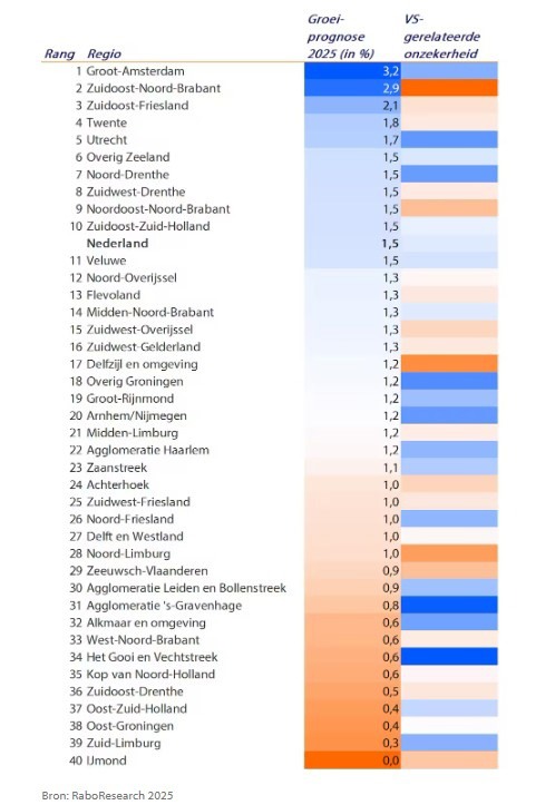 © RabobankGroot-Amsterdam en Brainport Eindhoven groeien het hardst in 2025