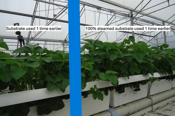 Om dit idee te testen, werkte Soil Steam samen met Peter Melis en het team van Proefcentrum Hoogstraten, een onderzoekscentrum voor aardbeien in België. Gezamenlijk startten ze een proef waarin vers substraat werd vergeleken met gestoomd, gerecycled substraat in verschillende mengverhoudingen.