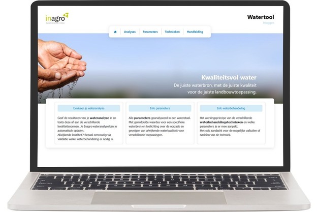 De Watertool van Inagro bestaat al ruim tien jaar. Gebruikers kunnen er hun wateranalyse invoeren, een toepassing kiezen en meteen zien of het water voldoet aan de kwaliteitsnormen. Indien nodig geeft de tool advies over mogelijke waterbehandelingen. Via financiering uit het Relanceplan Vlaamse Veerkracht 2021 werd de Watertool vernieuwd en uitgebreid met een aantal extra functies. De vernieuwde versie behoudt die kernfunctie, maar biedt nu meer flexibiliteit en gebruiksgemak, aldus de makers. De Watertool is gratis beschikbaar via www.watertool.be