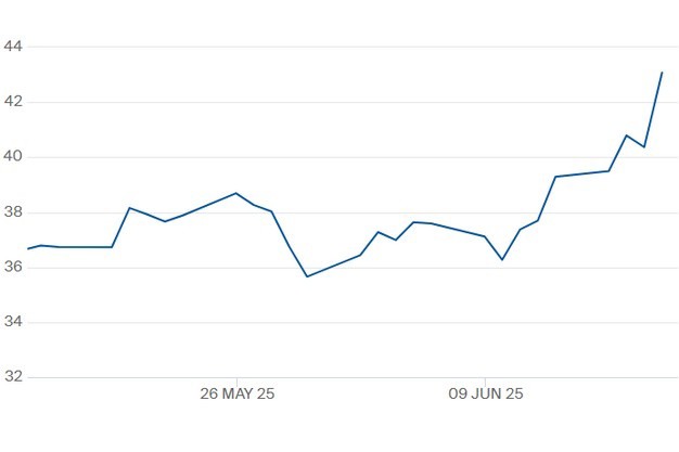 Een week na de aanval van Israël op Iran is de rust, ook op de energiemarkten, nog allerminst teruggekeerd. Donderdag schoot de TTF-gasprijs weer hard omhoog. Het maakt dat voor de resterende maandcontracten voor 2025 de prijzen overal ruim boven de 40 euro per megawattuur ligt.