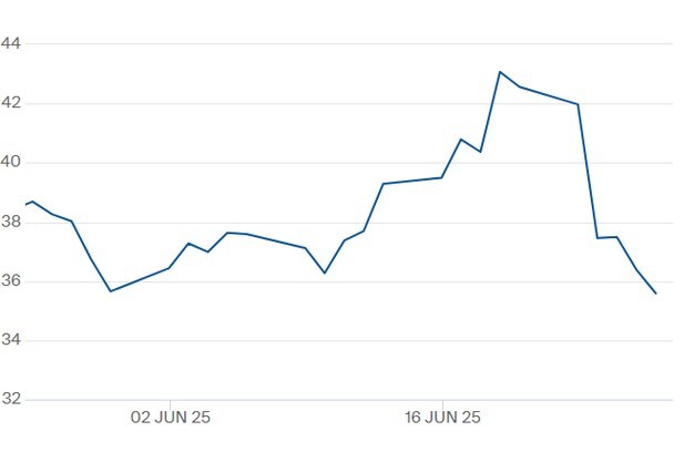 © ICEDe TTF-gasprijs voor het contract 'winter 2025' t/m 27 juni. Klik hier voor de actuele gascontractprijzen.