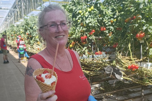Op de heetste dag van het jaar zijn de medewerkers van Kaaij Kwekerij verwend met een heerlijk ijsje van IJsboerderij boereiis met verse aardbeien van collegateler Fryske Strawberries.