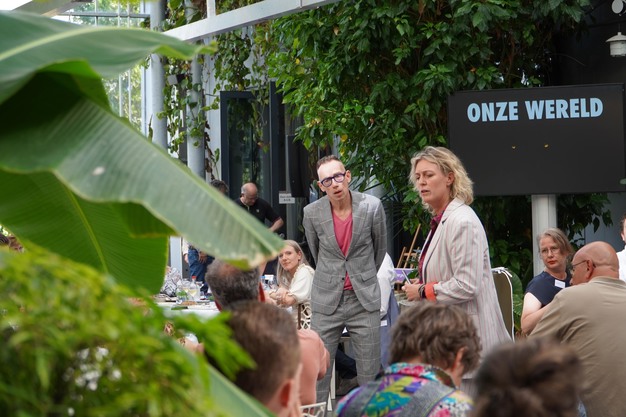 De toon werd gezet door antropoloog Jitske Kramer, die haar verhaal over liminaliteit vertelde: de tussenfase waarin oude structuren zijn afgebroken, maar het nieuwe zich nog niet duidelijk heeft gevormd. Precies daar, in dat ongemak, ligt de kans op echte transformatie – mits we de moed vinden om erdoorheen te stappen. "Het gaat niet om kennis en macht," stelde Kramer scherp. "Het gaat om moed." En dat resoneerde – vooral in de stilte die volgde op haar vraag: "Wat ga jij veranderen?"