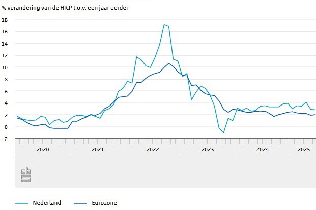 Het CBS publiceert twee verschillende cijfers voor inflatie. Een op basis van de consumentenprijsindex (CPI) en een op basis van de Europees geharmoniseerde consumentenprijsindex (HICP). Consumentengoederen en -diensten in Nederland waren volgens de HICP in juni 2,8 procent duurder dan in dezelfde maand vorig jaar. In mei was de inflatie volgens de HICP 2,9 procent. De inflatie in de eurozone steeg van 1,9 procent in mei naar 2,0 procent in juni.