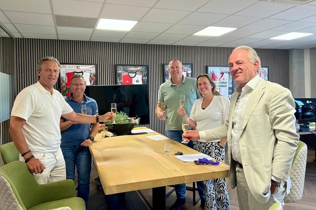 © Veldwerk UitzendbureauV.l.n.r: Jeroen Kester, Martin Vreeswijk, Boris de Veld en Maaike Vreeswijk. Uiterst rechts de notaris. Willem Verwoerd, mede-eigenaar van Rosa Werkt, staat niet op de foto.