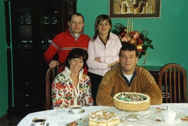 Wilma en Leo van Adrichem en staand Piotr Budny en zijn vrouw Ella