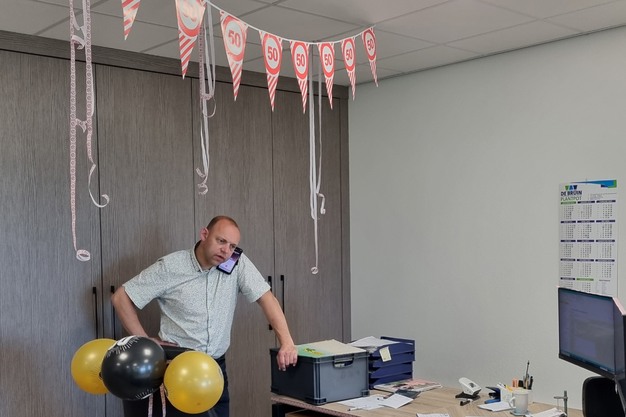"Onze werkgever Everard is deze week 50 geworden, maar dit weerhoudt deze Abraham er niet van om hard door te werken.