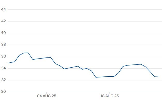 De TTF-gasprijs voor het contract Q1 2026 t/m 29 augustus. Klik hier voor de actuele gascontractprijzen.