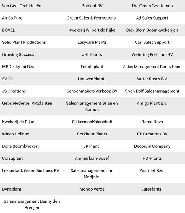 Ook dit jaar zijn er veel kwekers aanwezig, waaronder: