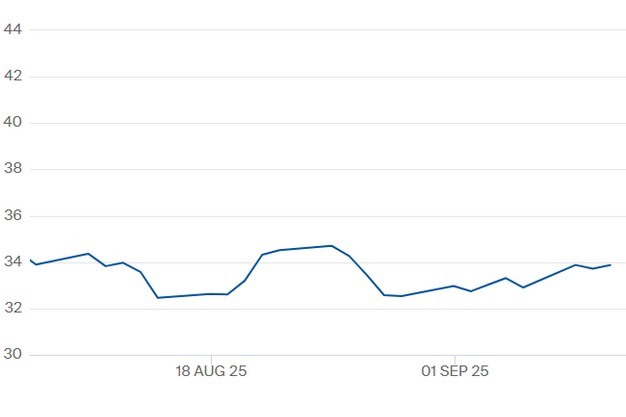 De TTF-gasprijs stijgt voorzichtig de afgelopen dagen, met contractprijzen voor komende winter die tegen de 34 euro per megawattuur aanschuren.