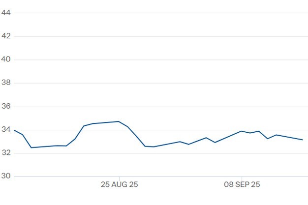 De TTF-gasprijs voor het contract Q1 2026 t/m 15 september. Klik hier voor de actuele gascontractprijzen.
