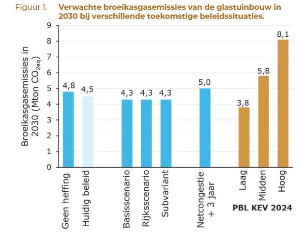 Aanleiding voor nieuw onderzoek naar de tariefhoogte is dat het Planbureau voor de Leefomgeving (PBL) in de Klimaat- en Energieverkenning 2024 de kans 'zeer klein' achtte dat de glastuinbouwsector het emissiedoel in 2030 ging halen met de destijds door Berenschot en Kalavasta berekende tariefhoogte.