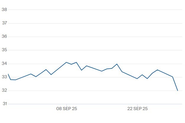 De TTF-gasprijs voor het contract Q1 2026 t/m 30 september. Klik hier voor de actuele gascontractprijzen.