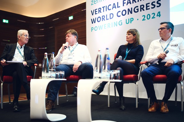 Richard Hall leidt een discussie op het Vertical Farming World Congress 2024