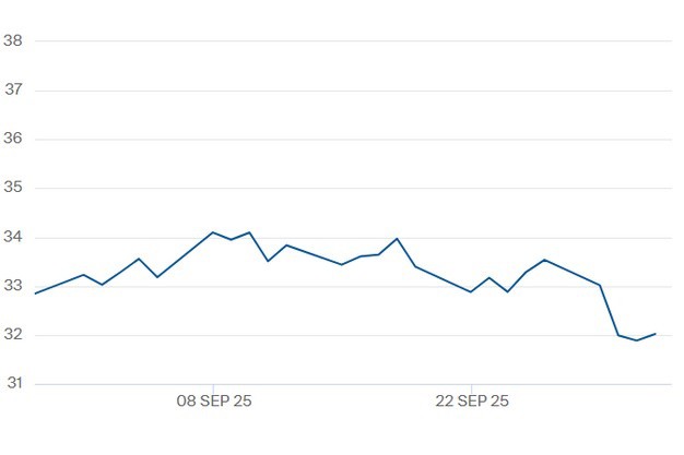© ICEDe TTF-gasprijs voor het contract Q1 2026 t/m 2 oktober. Klik hier voor de actuele gascontractprijzen.