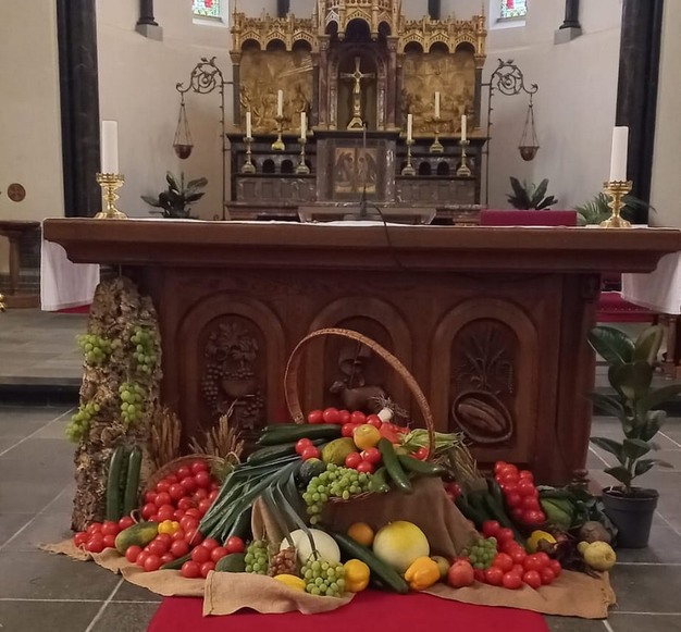 Oogstdankdag vieren is een uitnodiging om even stil te staan. En dankbaar te zijn voor al wat groeit, bloeit en wordt gedeeld. De oogst hebben we niet helemaal in eigen hand. We zijn afhankelijk van de zon en de regen. Dankbaar zijn we dat we hebben mogen oogsten.