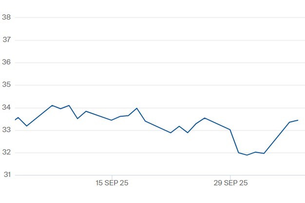 De TTF-gasprijs voor het contract Q1 2026 t/m 7 oktober. Klik hier voor de actuele gascontractprijzen.
