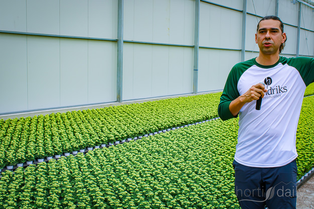 Teler Aron Meyer legde uit hoe de kas kan opereren in acht verschillende klimaatzones, al wordt doorgaans gestreefd naar zoveel mogelijk uniformiteit. Het eb- en vloedsysteem is ontworpen om de potten aan de onderzijde droog te houden, terwijl het water eronder circuleert. Het team kijkt voortdurend naar automatisering, maar hecht ook veel waarde aan werkbaarheid: de pottenafstand wordt gestandaardiseerd met een pottenplaatsmachine, en de bemesting blijft bewust eenvoudig om consistente processen te waarborgen.