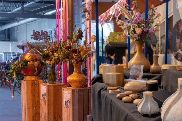 Op de beursvloer ontdekten klanten de nieuwste collecties en ideeën met o.a. de houten urnen van Memories to Keep. Daarnaast zorgden inspirators als Masja Pit, Tessa van Bloom Beej Tess, Adomex International, JK Plant, en Alexander Brouwers voor concrete inzichten – van slimmer werken met AI tot creatieve abonnementsvormen en duurzaam hergebruik van materialen.