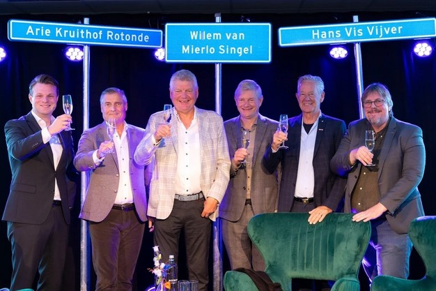 Tijdens de bijeenkomst werden drie mannen in het zonnetje gezet: Arie Kruithof, Willem van Mierlo en Hans Vis. Zij maakten deel uit van de Honderdland Ontwikkel Combinatie (HOC) en kregen elk een eigen naam op een speciaal bord. Het drietal stond aan de basis van de ontwikkeling van het omvangrijke bedrijventerrein.