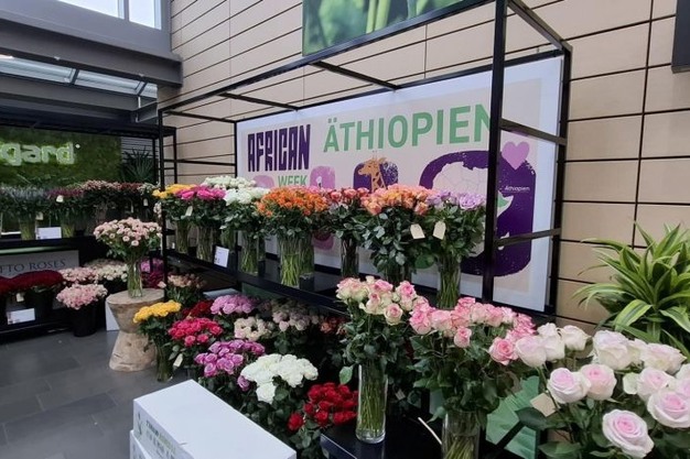 Van 6 tot en met 9 oktober werd de foyer van Veiling Rhein-Maas omgetoverd tot een kleurig geheel voor de African Week. Rozen- en zomerbloemenkwekers uit Kenia, Ethiopië, Tanzania, Zimbabwe, Ghana en Zuid-Afrika toonden hier hun actuele assortiment. Tijdens de African Week van Veiling Rhein-Maas stond het verbinden van Afrikaanse kwekers met voornamelijk Duitse kopers centraal.