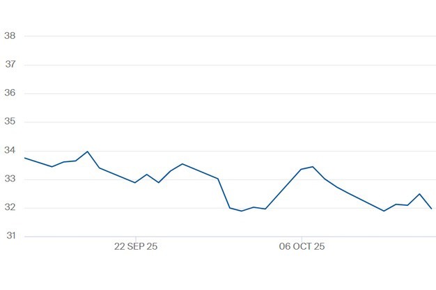 De TTF-gasprijs voor het contract Q1 2026 t/m 17 oktober. Klik hier voor de actuele gascontractprijzen.