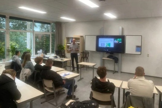 Onder begeleiding van docent Alex Stoop verzamelden de studenten vooraf al voorbeelden van circulaire toepassingen. Tijdens de les bespraken ze hun ideeën en werkten ze deze verder uit. Dat leverde gesprekken op over hergebruik, materiaalkeuze en duurzame bedrijfsvoering.