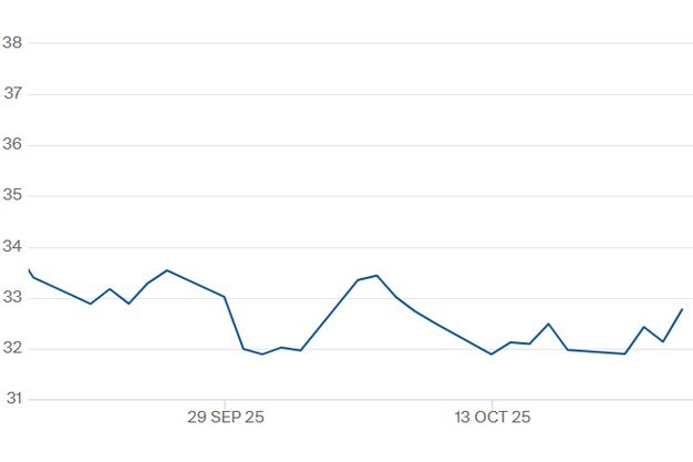 © ICEDe TTF-gasprijs voor het contract Q1 2026 t/m 23 oktober. Klik hier voor de actuele gascontractprijzen.