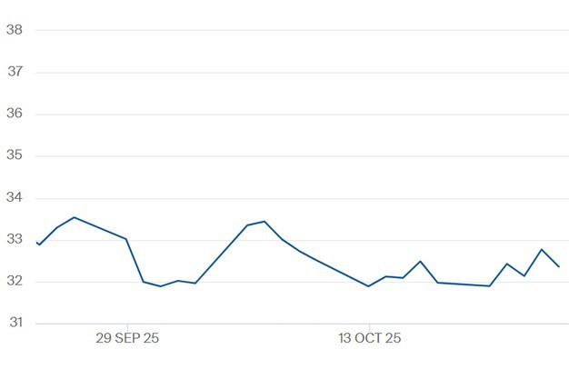 De TTF-gasprijs voor het contract Q1 2026 t/m 24 oktober. Klik hier voor de actuele gascontractprijzen.