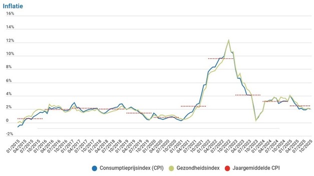 Volgens StatBel ligt de eerste inflatieraming volgens de Europees geharmoniseerde consumptieprijsindex (HICP flash estimate) voor België op 2,5% in oktober. In Nederland worden de reguliere CPI-cijfers voor oktober op 11 november gepubliceerd. Vanaf 2026 verandert het basisjaar van de CPI en HICP van 2015=100 naar 2025=100, met een update van de classificatie van goederen en diensten.