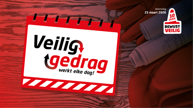 De jubileumeditie van de Bewust Veilig-dag komt eraan. Op woensdag 25 maart 2026 vindt de tiende editie van deze dag plaats. De bouw-, techniek-, infra- en onderhoudssector staan dan weer gezamenlijk stil bij het belang van veilig en gezond werken. Alleen hoort veiligheid niet slechts één dag per jaar, maar dagelijks op één te staan. Daarom luidt de slogan deze editie: Veilig gedrag werkt elke dag!