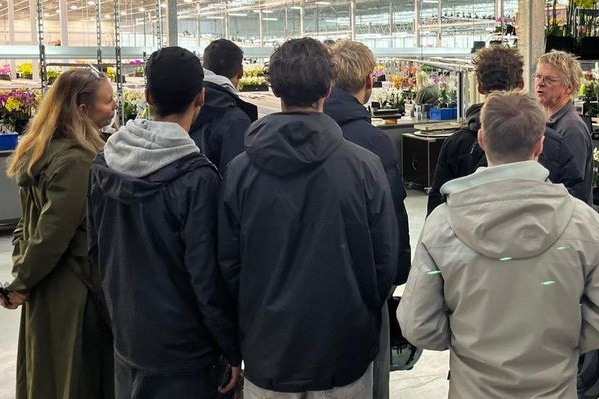 René Hendriks, eigenaar van orchideeënkwekerij Optiflor, en Paul Kortekaas, de technische spil binnen Optiflor en verantwoordelijk voor het bouwproces van de nieuwe kas aan de Boomaweg in Monster, namen de studenten mee de kas in. De vele soorten hightech innovaties en vernuftige uitvindingen maakten de studenten al erg enthousiast.