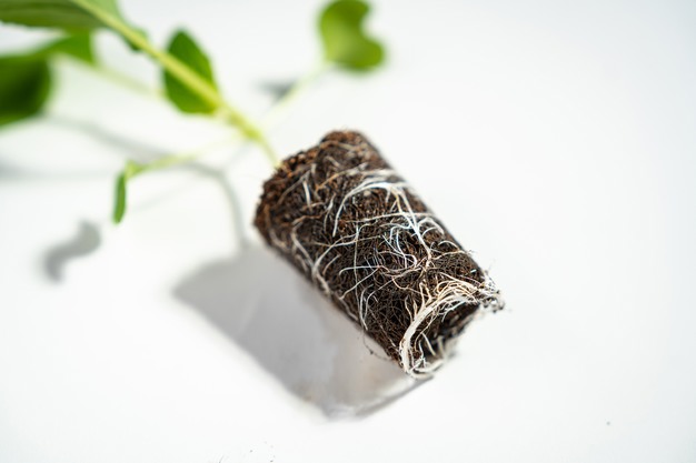Kweekplug met bruine kleur voor sterker contrast met plantwortels
