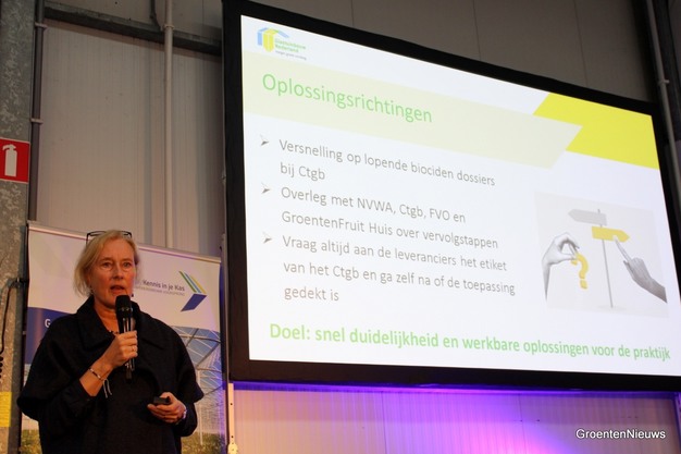"Bij twijfel, bellen", is ondertussen het advies dat Bom-Lemstra telers die met biociden werken meegeeft. Ze drukt hen op het hart zich aan de gebruiksvoorschriften van middelen te houden. Van leveranciers vraagt ze om met de hiervoor verantwoordelijke instanties voor duidelijke gebruiksvoorschriften voor biociden te zorgen. Daarbij komt ook het Ctgb in beeld. Die instantie moet vaart maken met het inhalen van achterstanden op het gebied van toelatingen, en is daar naar verluidt nu ook hard mee bezig.